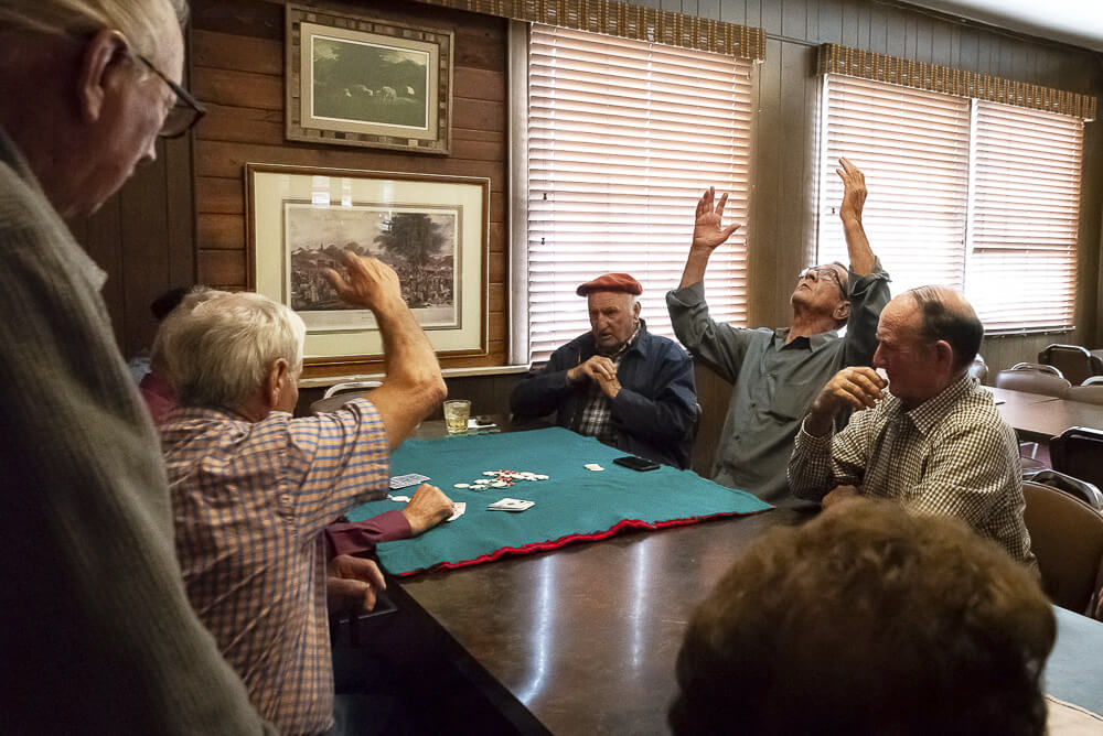 A friendly after-dinner game of cards turns into a lively affair at Centro Basco. Photo by Helen Arase.